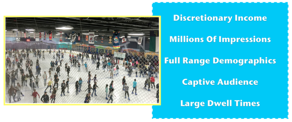 Glass Ads advertising is an innovative way to place your Sponsor Logos. This form of ice rink and arena advertising is unique because it does not impair the view of the fans when viewed from the back side. This premium decal material has holes in it with a white face and black backer.